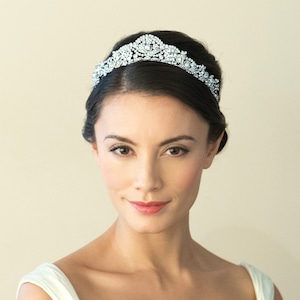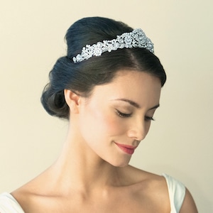 上品で品格のあるティアラは、スタイリッシュなシニヨンなどのアップスタイルとの相性がよく、まるで物語に出てくるお姫様のようなロマンティックなコーディネートになります。