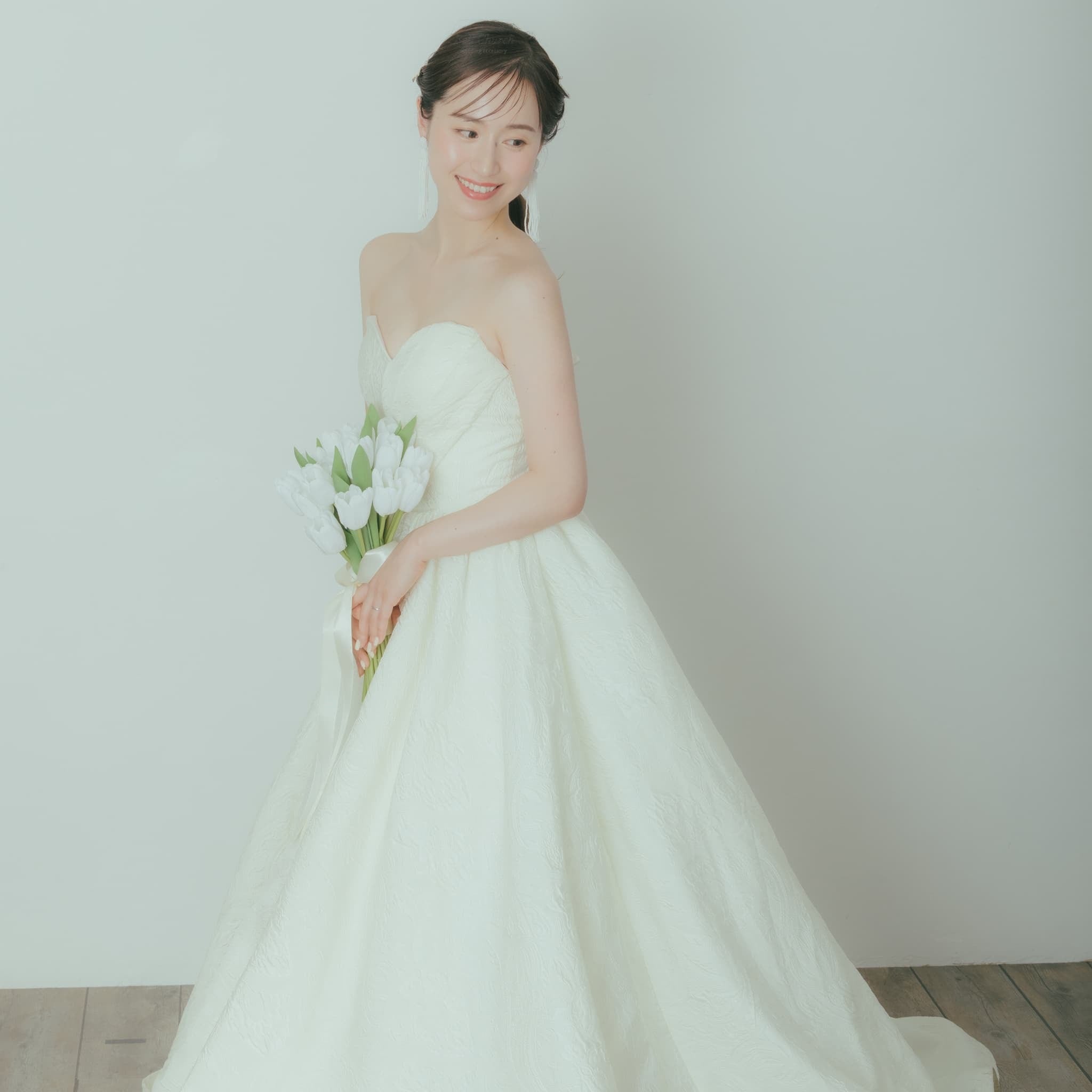 ビーズタッセルのロングピアスです。花嫁様の横顔にアクセントを添えてくれます。