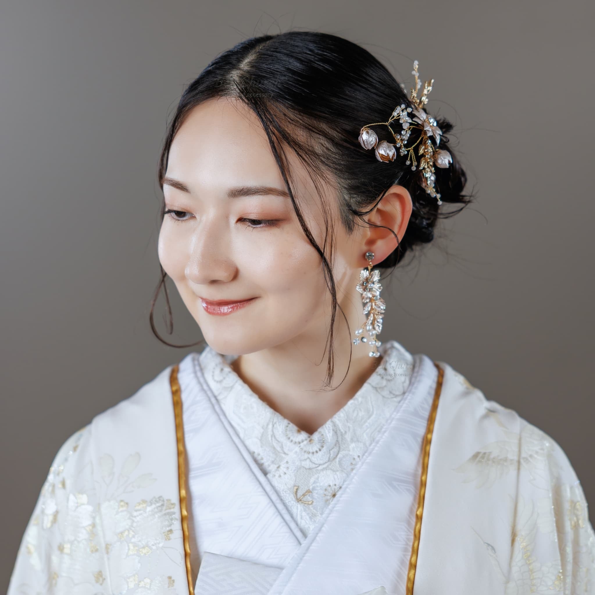 ガーデンウエディングなどのお外でのお式や前撮り、春先や初夏の季節にもぴったりなアクセサリーで、ナチュラルな雰囲気がお好きな方におすすめです。
