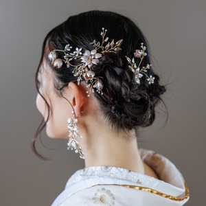 シニヨンに差し込んだり、ハーフアップやポニースタイルに添えたりと、自由自在にヘアアレンジをお楽しみいただけるアイテムです。