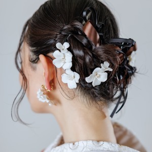 セラミックのホワイトのお花が上品で可憐な、ヘッドピースの5点セット。